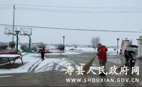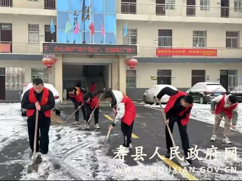 刘岗镇机关党员干部在镇政府门口清扫积雪